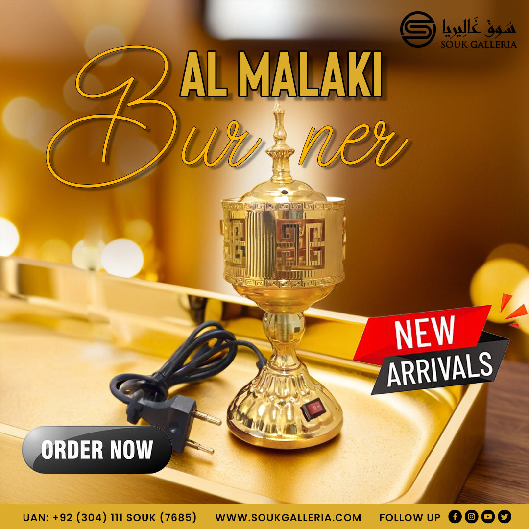 Transform your space into a sanctuary of luxury with the Al Malaki Burner (The Royal Burner), also known as Mashal Al Abeer (Aroma Torch). Designed for elegance and functionality, this exquisite burner is perfect for diffusing the rich, aromatic scents of your favorite bakhoor, oud, or incense.