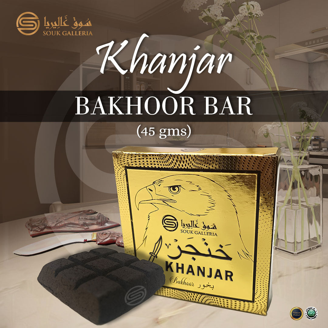 Bakhoor Khanjar is a high quality incense with a long lasting smell. The freshness of the floral notes suffused with the earthiness of the woody notes make it a divine concoction that relieves stress and creates a serene ambiance. The herbal accords add spiciness and fullness to this scent making it an unforgettable aroma that lasts in the memory and promotes feelings of joy. This exotic fragrance creates soothing ambiance that helps create harmony and balance wherever it is used.