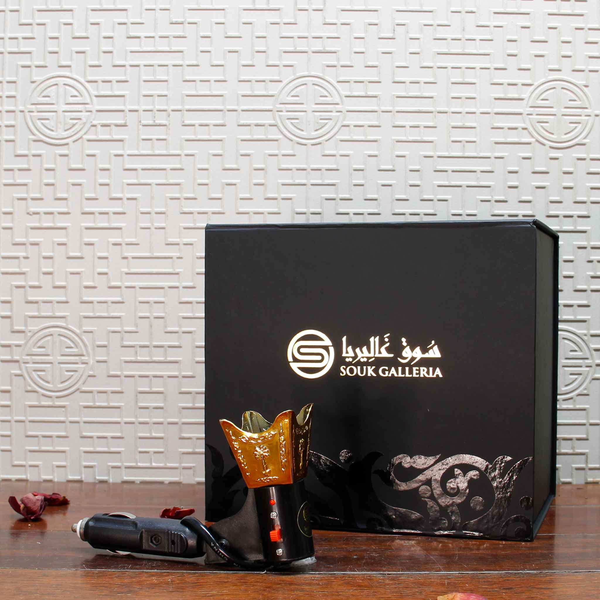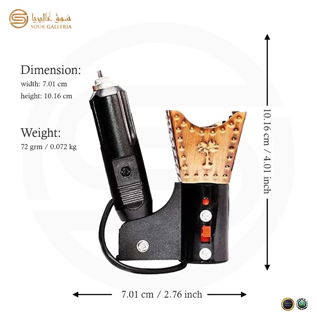 DESIGN: An attractive four sided burner with Arabian palm trees engraved on all sides. Compact in size, ideal for use in car.